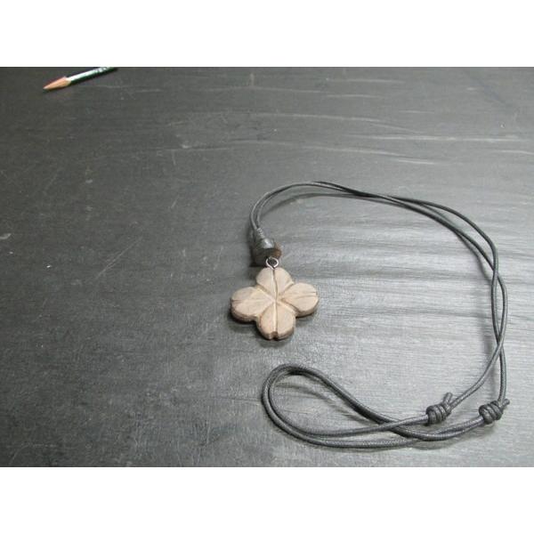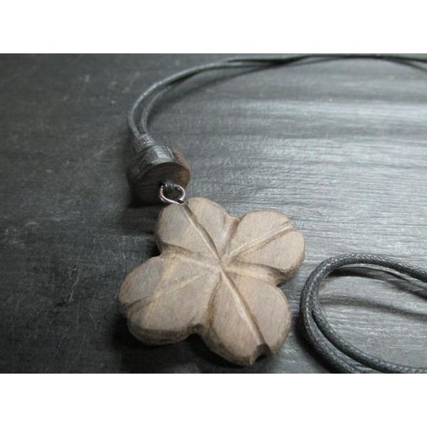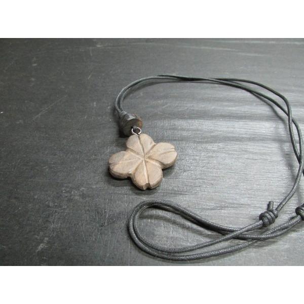 ブラックウッド素磨き四葉のクローバーペンダント 木製ペンダント 銘木 木のアクセサリー 紐 彫刻 木彫り 植物 工芸 作家