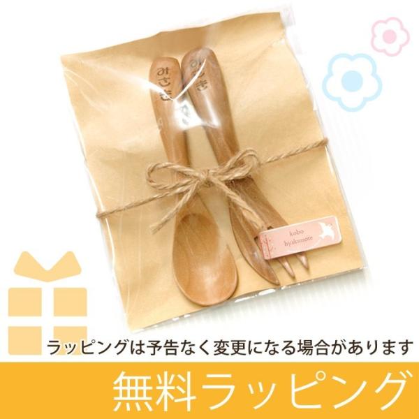 名入れ無料!木製のベビースプーンとフォークのセット。