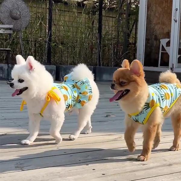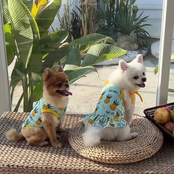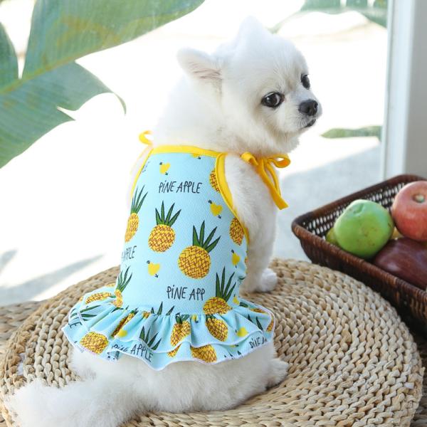 犬服 春夏 かわいい人気ドレス タンクトップ パイナップル柄 小型犬中型犬用 安いおしゃれなワンピース ドックウェア