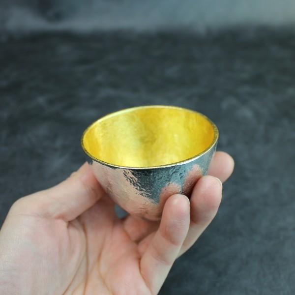 金沢の伝統である金箔とのコラボ商品です。錫のぐい呑みの内側に金箔を貼り、贅沢なひとときを演出します。お酒がより一層おいしくいただける商品です。