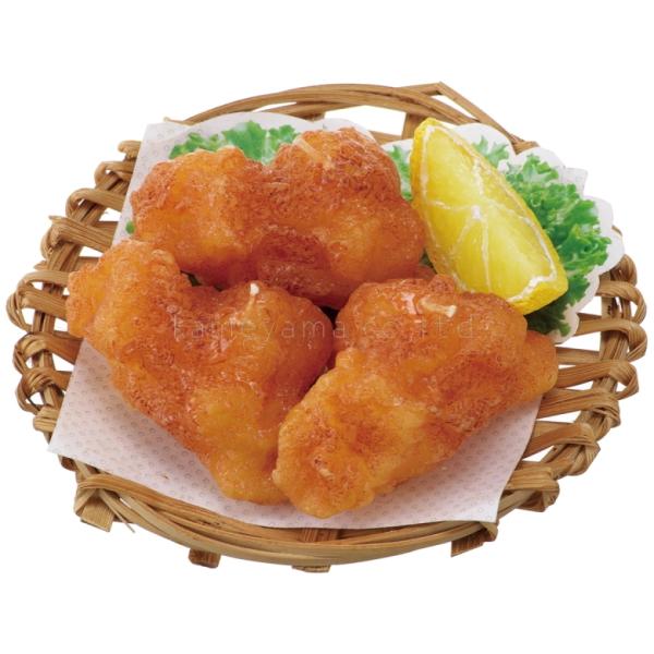 こだわりの竹製手編みザルにのせたジューシーなからあげ。