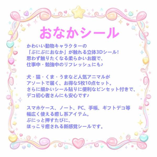 かわいい動物キャラクターの「ぷにぷにおなか」が触れる立体3Dシール!