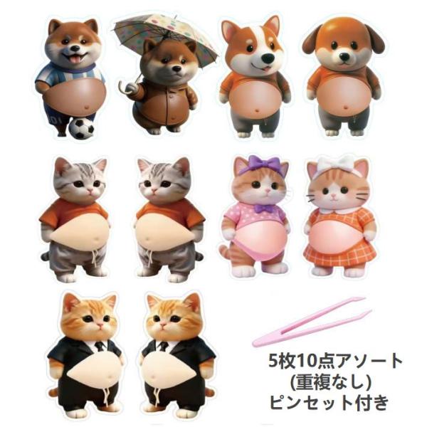 おなかぷにぷに3Dキャラクターシール 犬猫アニマル
