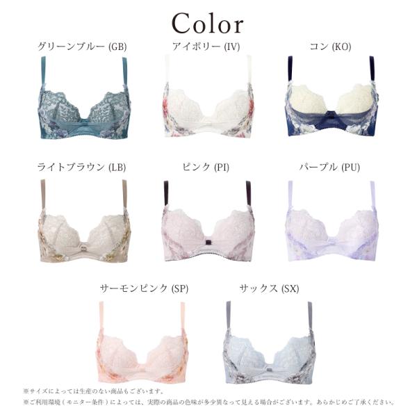 グリーンブルー(GB)、アイボリー(IV)、コン(KO)、ライトブラウン(LB)、ピンク(PI)、パープル(PU)、サーモンピンク(SP)、サックス(SX)
