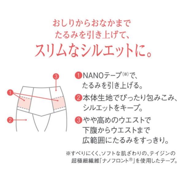 はきこみ丈とNANOテープを従来の製品より長くすることで、リフトアップ効果を高め、