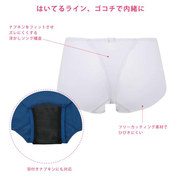 ・ダブルクロッチ構造で羽付きナプキンにも対応