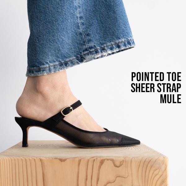 【2025新作】メッシュ ポインテッドトゥ ミュール 5.5cmヒール 大人 シアー素材 シアーストラップミュール アイニード ineedmoreshoes 【st-2406-s】
