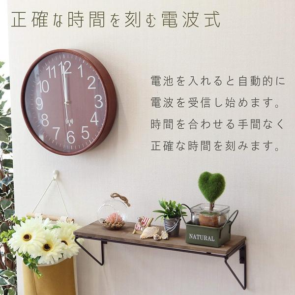 掛け時計 直径28cm ブラウン 電波 木製 プライウッド 85351