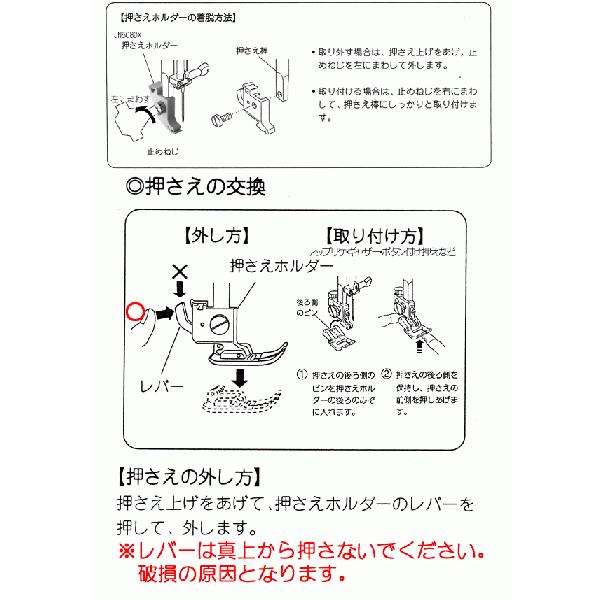 ※押えホルダーを止めるネジは含まれていません。ネジはミシン本体についていたものをご使用下さい。
