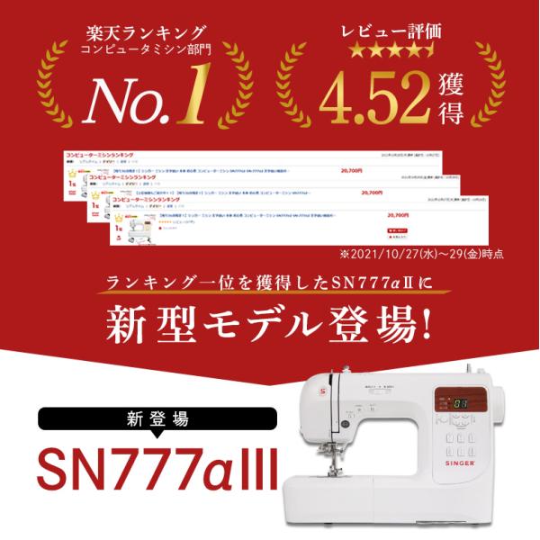 シンガー ミシン 文字縫い 本体 初心者 コンピューターミシン SN777α3 WT&FC&サイドカッター付!
