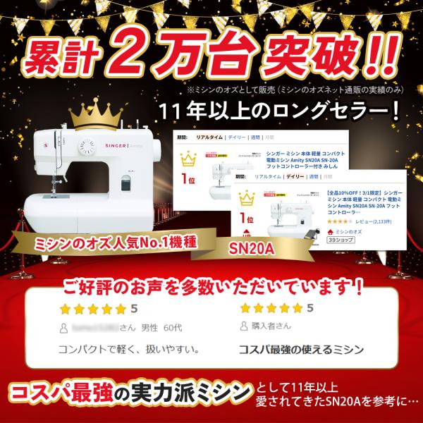 シンガー ミシン 電動ミシン Amity SN20A SN-20A フットコントローラー付き みしん 5年保証
