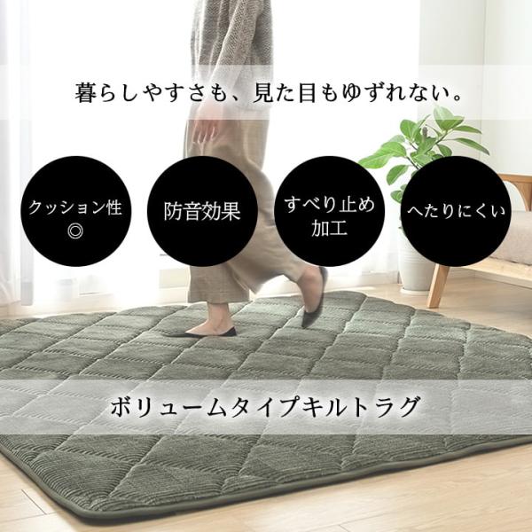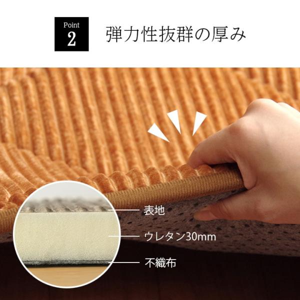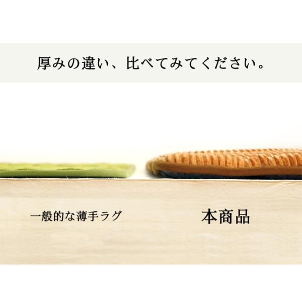 中材にウレタン30mmを使用したボリュームタイプ。8万回の耐久試験にクリアした、へたりにくいラグです。