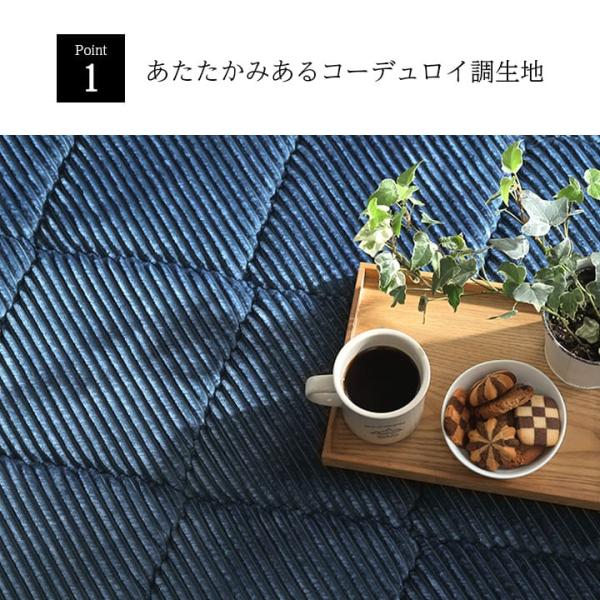 表地はコーデュロイ調の凹凸ストライプにダイヤのキルティングをプラス。