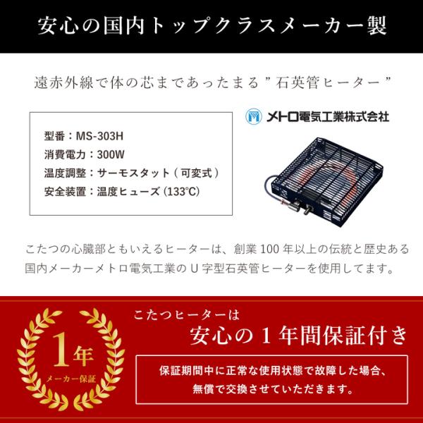 ■こたつヒーターは安心のメーカー1年保証です。