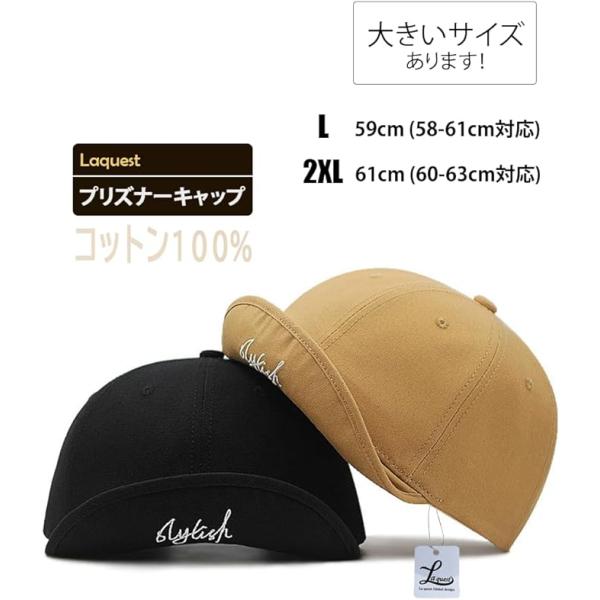コットン100% つば短 キャップ プリズナーキャップ メンズ/レディース 大きいサイズ (最大63cm)あり つばの短い 帽子