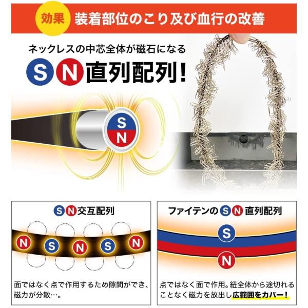 紐の中芯すべてに採用の強力な磁気が首・肩を包み、血行改善