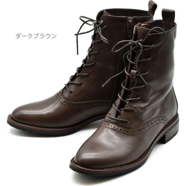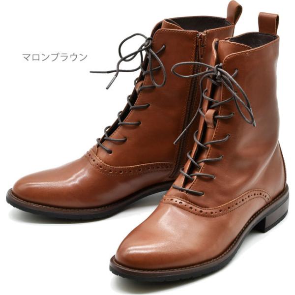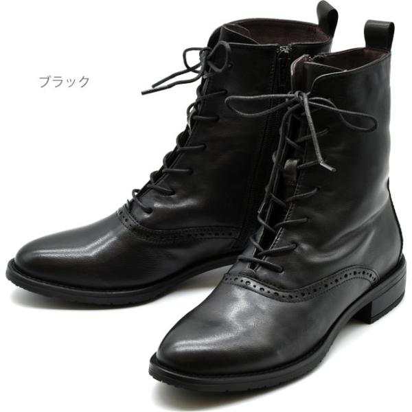 ブーツ レディース 厚底 ブラック 黒 あしながおじさん レースアップブーツ 本革 レザー 編み上げブーツ レディース 2410097