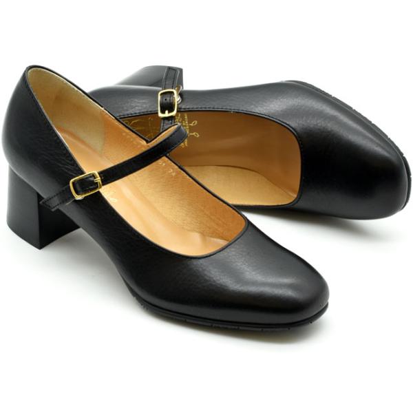 パンプス レディース 厚底 ブラック 黒 あしながおじさん 厚底パンプス ストラップ メリージェーン 本革 レザー レディース 全3色 22.5-24.5 黒 3710379