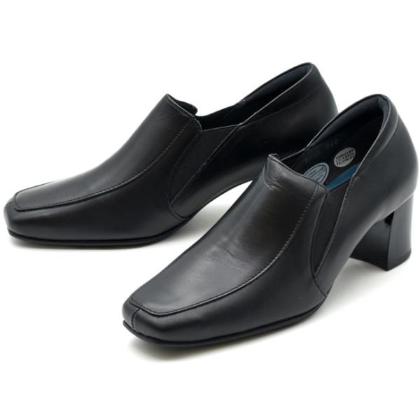 パンプス ビジネス フォーマル ローファー 仕事履き お仕事用 レザー ブラック 黒 エレガンス ミセス ヒール 冠婚葬祭