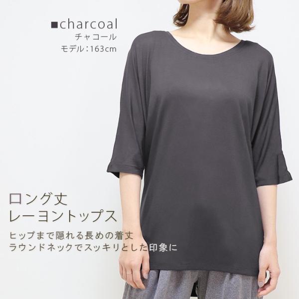 なめらかな レーヨン生地 の ドルマン ロング丈Tシャツ