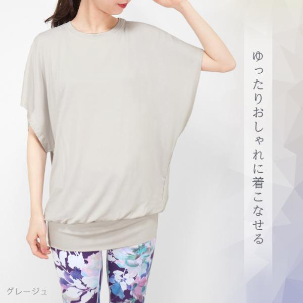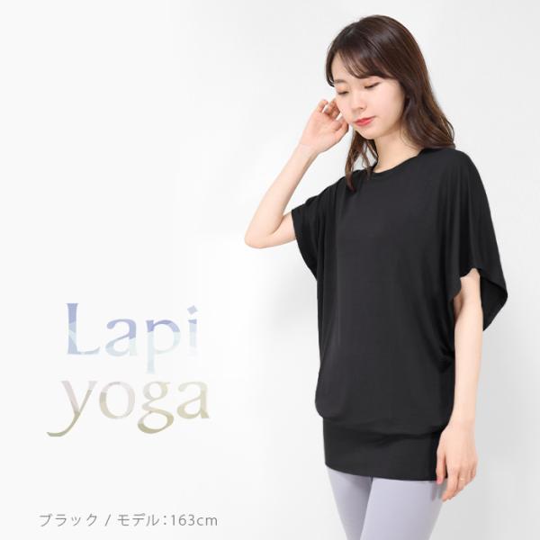 ヨガウェア 半袖 トップス ゆったり チュニック ワイドスリーブ ヨガ ピラティス レディース ロング丈 めくれない スポーツ 無地 lapiyoga ラピヨガ *2 *y3-2t