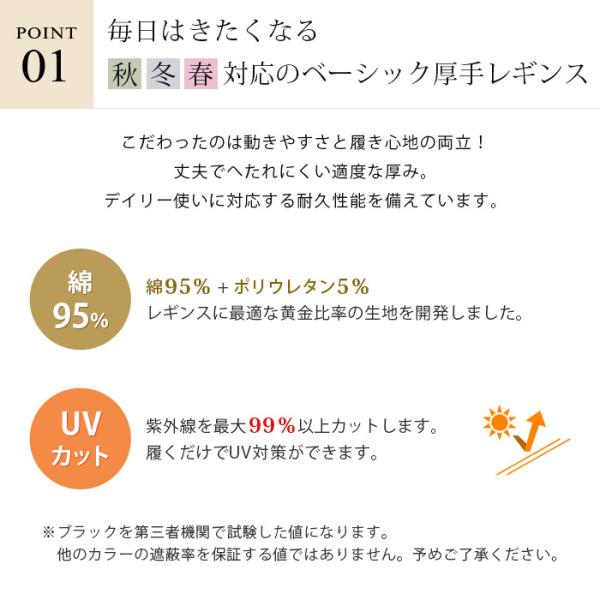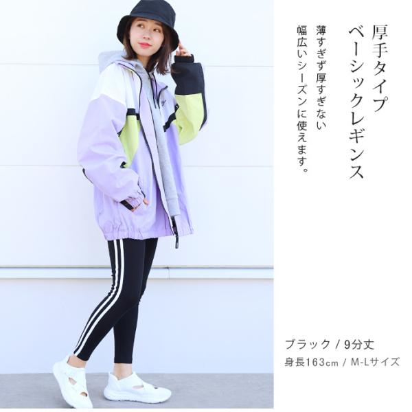 特徴:秋冬春に活躍する適度な厚み、ベーシック生地・厚手タイプのライン入りレギンスです。