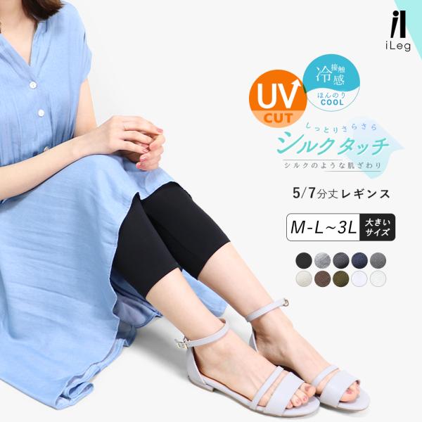 レギンス レディース 夏 7分丈 5分丈 涼しい 薄手 UVカット 夏用 大きいサイズ スパッツ 接触冷感 インナー ハーフレギンス iLeg シルクタッチ *1*2-3t *y3-4t