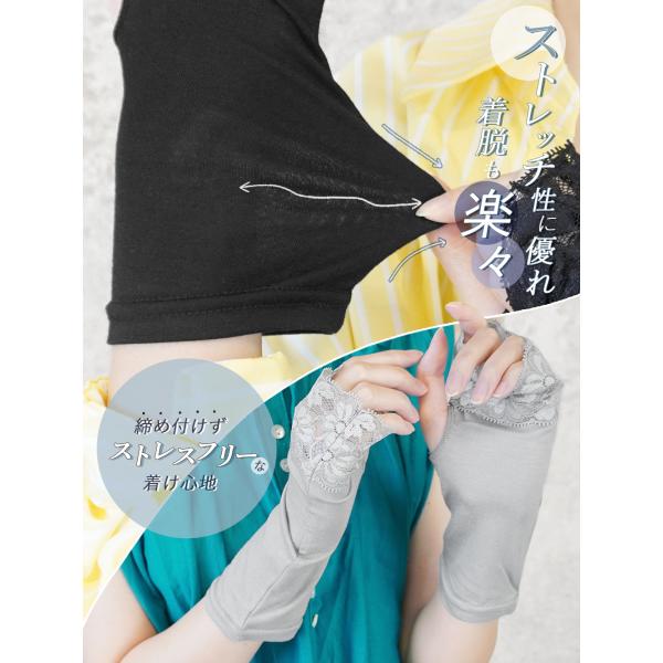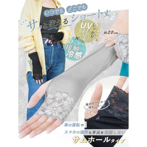 アームカバー レース uv 接触冷感 ショート丈 薄手 UVケア 指なし 指穴付き サムホール 20cm フィット ストレッチ 涼しい おしゃれ かわいい *1-6t*2-12t*y3-18t