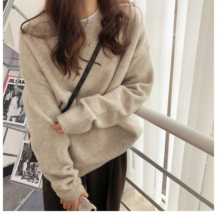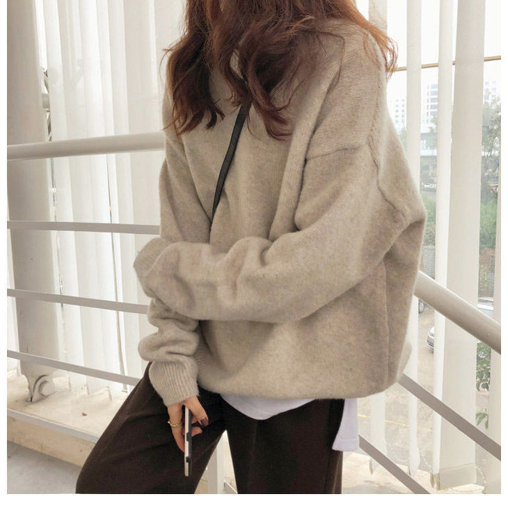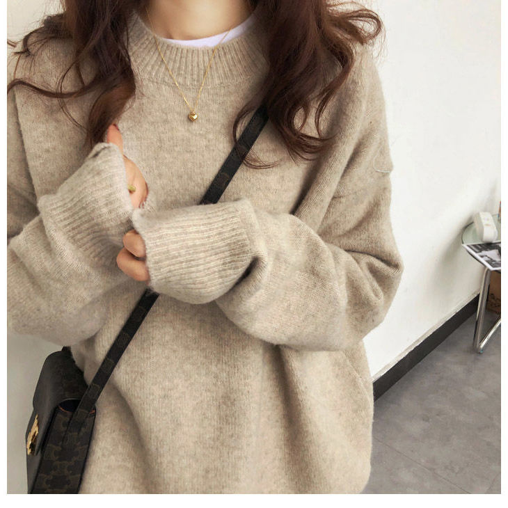 厚手 ニット服 セーター 女性 冬アウター ルーズ セーター 大サイズ カシミヤタッチ 無地 厚手シャツ 秋冬