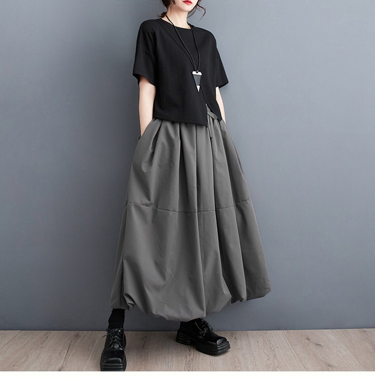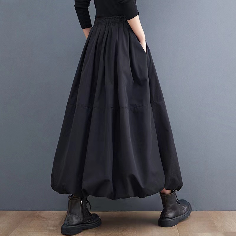 スカート ミディアムスカート バルーン ロング レディース 黒 大きいサイズ フレアスカート 秋コーデ ロングスカート シンプル