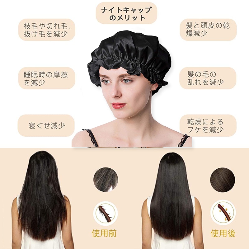 髪 ナイトキャップ 摩擦防止 ヘアキャップ ナイトヘアキャップ ヘアケア ロングヘア就寝用 帽子 パサつき予防