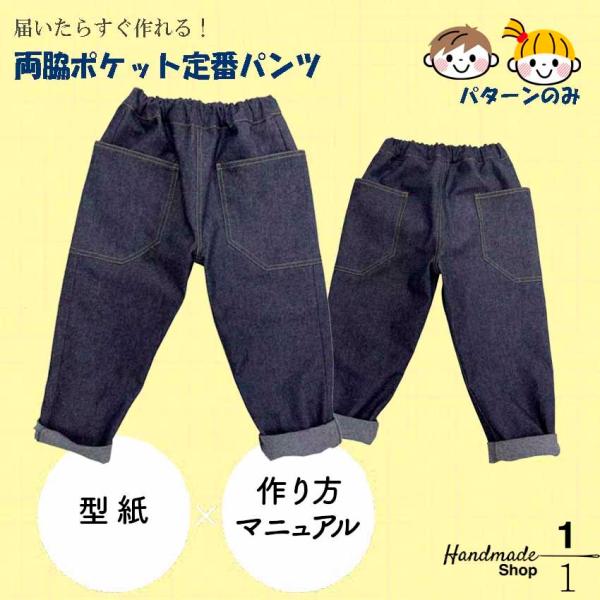 型紙 縫い代付き パンツ 2つポケット ズボン 小学生 低学年 保育園 かわいい かっこいい 子供 子ども こども キッズ パターン