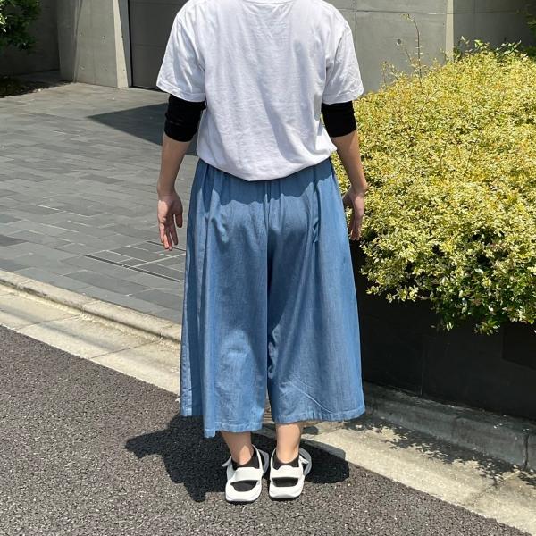 タックが入っているのでパンツ裾巾は大きいまま、ウェスト部分のギャザーがすっきりしています。