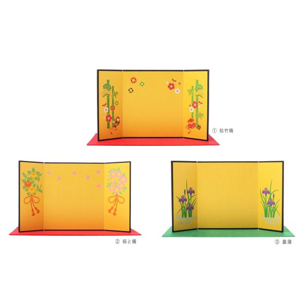 屏風 三つ折り 136mm×242mm (毛氈付き) 屏風 金屏風 びょうぶ 衝立 雛人形 五月人形 四曲屏風 人形