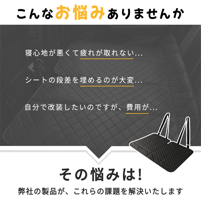 ・本品は後部座席をフラット(平ら)にできる車種が必須です。ご自身の車の後部座席が完全に平らになるか、まずはお確かめください。段差が大きい場合は適合しない場合がございます。