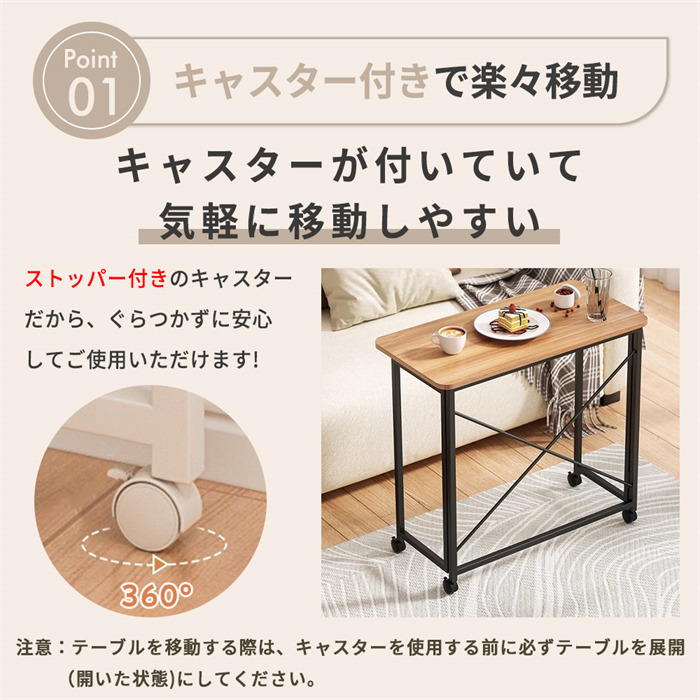 ・キャスター付きで移動楽々:360°回転する万向輪でスムーズに移動。