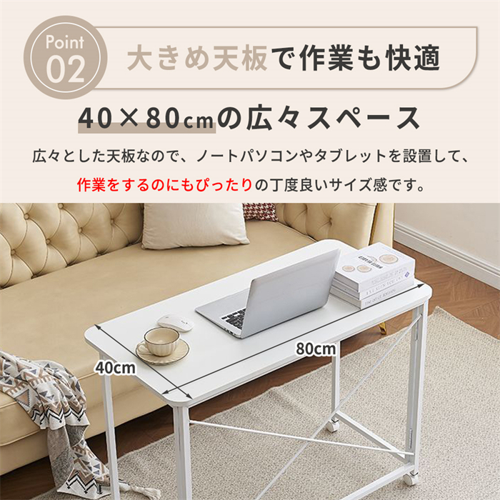 折りたたみデスク 幅80cm キャスター付き 組立簡単 収納便利