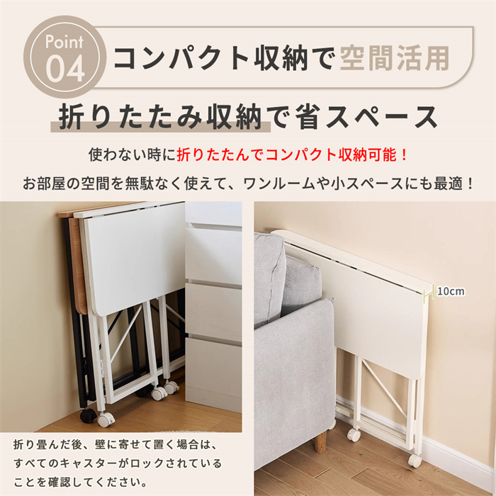 折りたたみデスク 折りたたみテーブル 80 2人掛け キャスター付き 長方形 コンパクト 省スペース ダイニングテーブル おしゃれ 送料無料