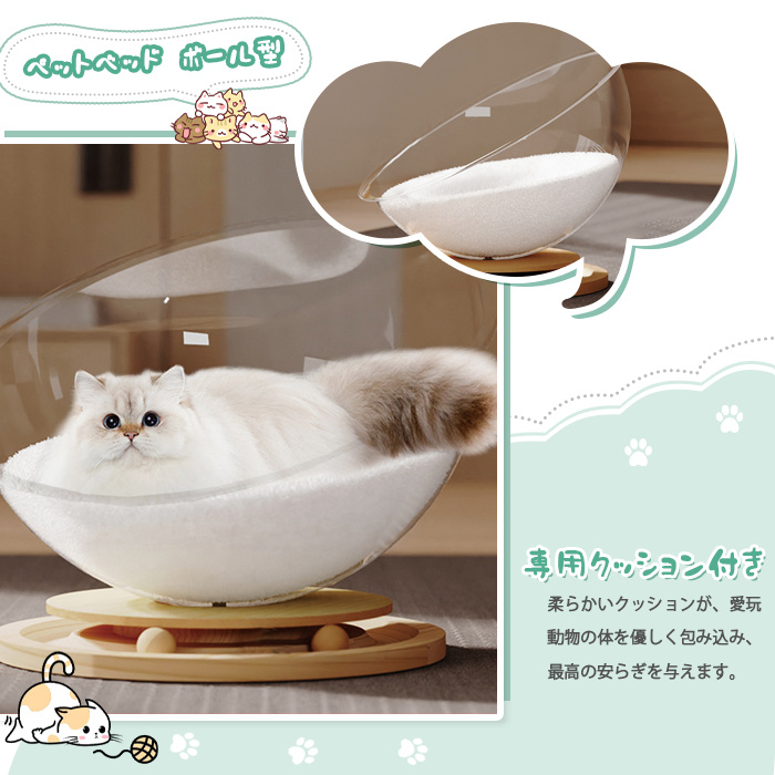 猫ベッド 猫 ベッド ペットベッド キャットハウス 透明 半円形 球体 宇宙船 昼寝 猫用 ねこ ペット 隠れ家 寝床 いつでもいっしょ 送料無料