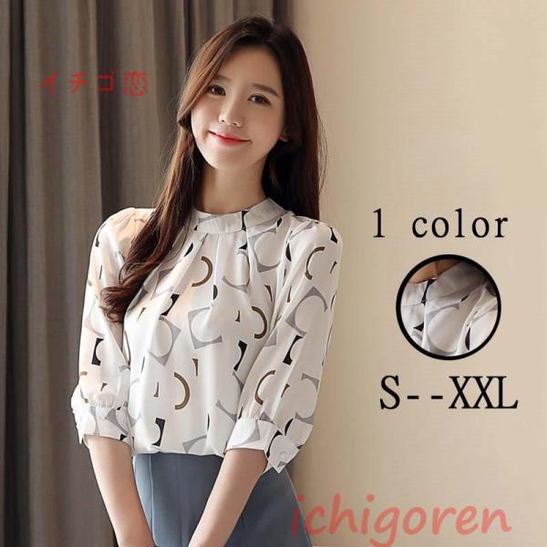 ブラウス レディース シフォン 半袖 花柄 サマートップス 韓国風 ゆったり ガーリー 気質 シンプル 涼しい ラウンドネック 淑女 エレガント お出かけ 着痩せ
