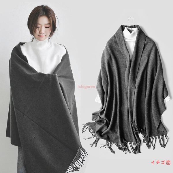 大判ストール 秋冬 スカーフ マフラー 無地 ウールタッチ フリンジづき 大きい レディース メンズ 大人 上品 おしゃれ 黒 グレー ベージュ カーキ