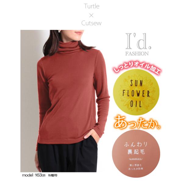 新入荷 裏起毛 天然オイル加工 長袖 タートルネック カットソー ハイネック ロンT 無地 トップス レディース インナー 秋冬 M L LLサイズ 9604