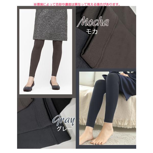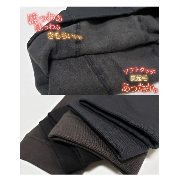 ■裏起毛のレギンス。ストッキングのような丸編み製法で、足の外側、内側には継ぎ目なしで暖かくフィット。