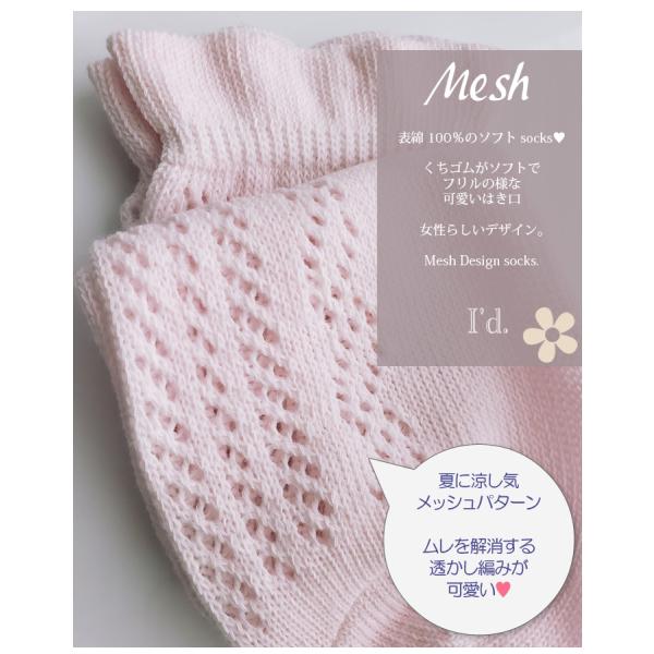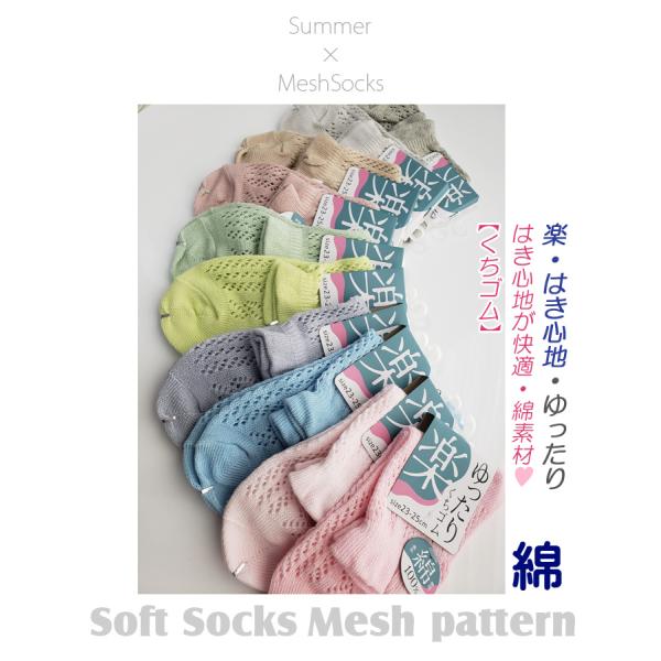 はき口がゆったり、しめつけ軽減、メッシュで夏に涼しい夏ソックス。