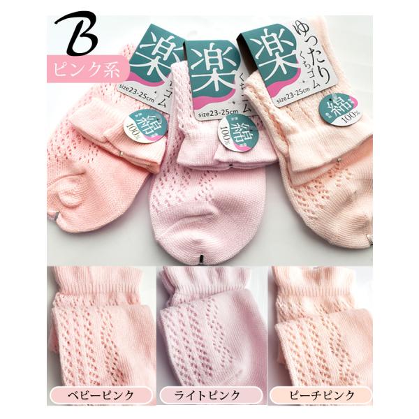 【3足組】くちゴム ゆったり 夏靴下 メッシュ 綿100% ゆったり しめつけ軽減 レディース ソックス くつ下23-25cm カラー 春 夏 レディース 9701