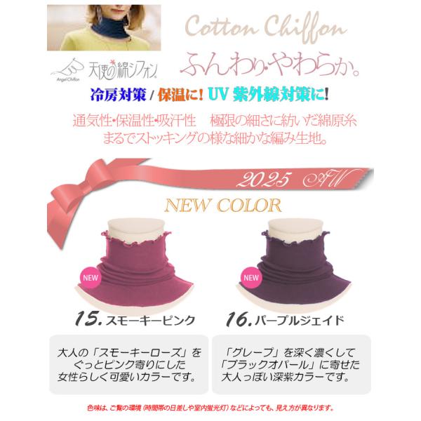 NEW 全37色 綿100% ネックカバー 裾広がりタイプ 天使の綿シフォン 薄手 ダブルガーゼ 保温 レディース UV 春 夏 秋 冬 ネックウォーマー 新色 レディース 9988