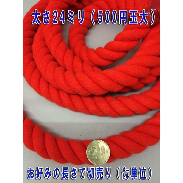 太さ24ミリのロープ 紐 赤と白があります 太さ24ミリ メートル単位で切り売り カラーロープ