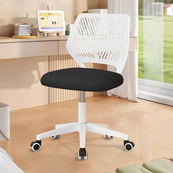 【アームレスデザイン、空間節約】このオフィスチェアは、使用時に手を動かすための多くのスペースを与えるアームレストなしで設計されています。使用しないときは、テーブルの下にそっと押し込んでおけるので、場所をとりません。