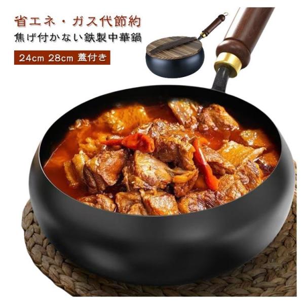 28cm 焦げ付かない 中華鍋 鉄フライパン 中華鍋 省エネ 24cm 伝統鉄鍋 軽量設計 錆びない仕様 ガス代節約 焦げ付き防止 ガス/IH対応 鉄