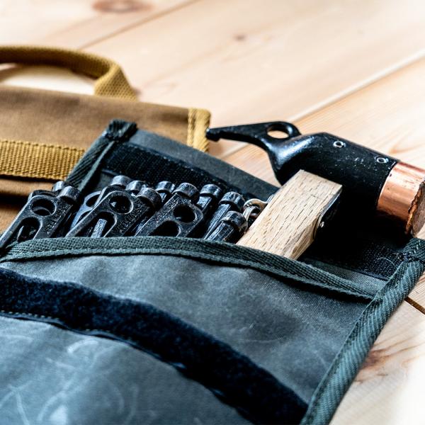 ペグやハンマー、リッドリフターなどの収納に最適なシンプルで使いやすいデザイン。